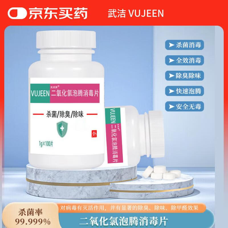 VUJEEN二氧化氯消毒片100片二氧化氯泡腾片浴缸鱼缸泳池除甲醛消毒液