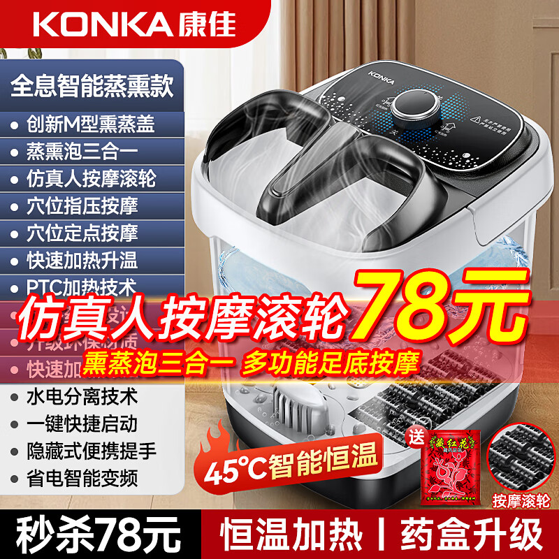 康佳【生日礼物】泡脚桶加热恒温足浴盆全自动按摩桶洗脚盆电动家用高深足浴桶送老人长辈爸爸妈妈 【全息智能蒸熏款】恒温加热+驱寒除湿+养身