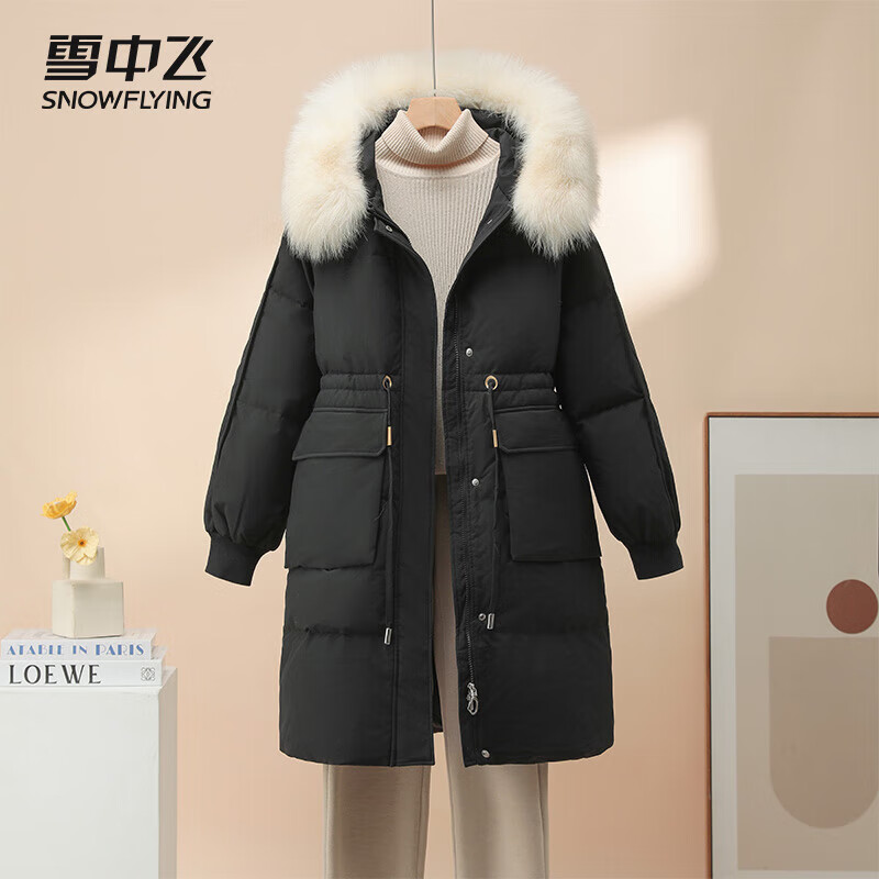 雪中飞长款羽绒服女25冬季时尚毛领防风加厚保暖90绒外套30608 黑色 L (170/92A)