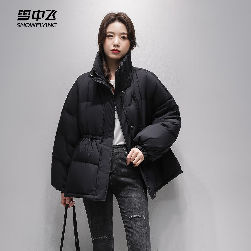 雪中飞女士短款羽绒服90鸭绒抗寒保暖户外时尚休闲宽松外套30739 黑色 M (165/88A)