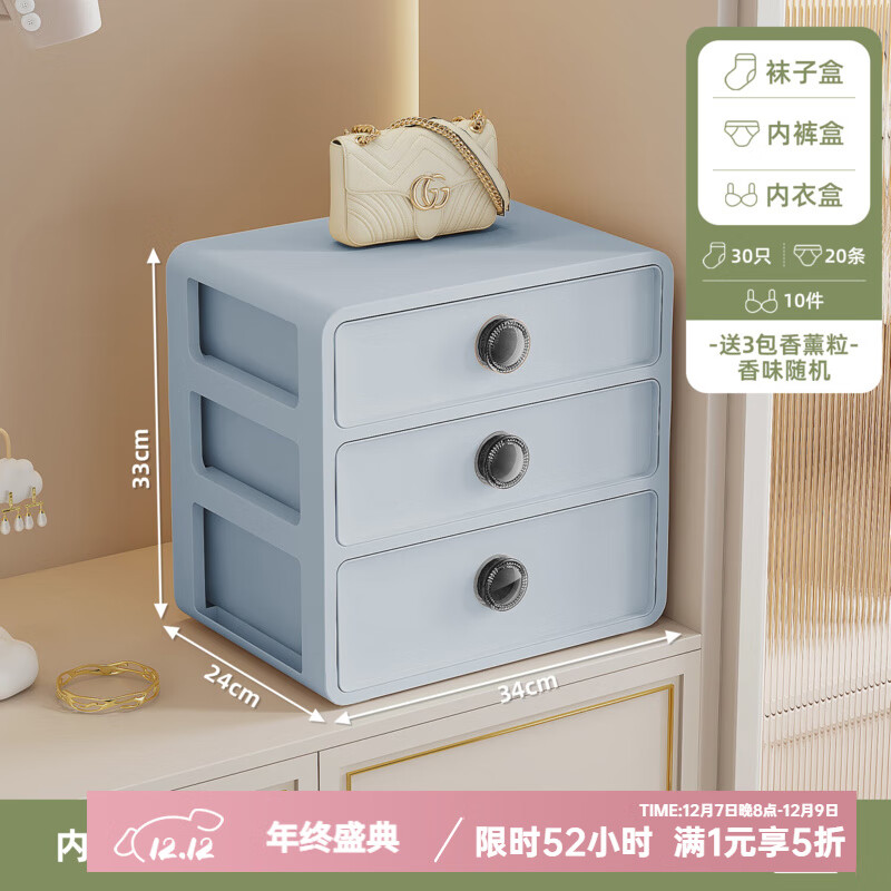 纳份爱内衣收纳盒抽屉式衣柜收纳分层神器贴身衣物袜子内裤三合一整理盒 香薰内衣盒3层【内衣+内裤+袜子】 免安装/自由叠加