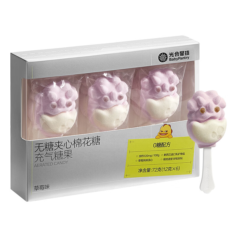 光合星球babycare儿童零食合集山楂果肉条饼干小馒头2 无糖夹心棉花糖(草莓味) 72g*1盒