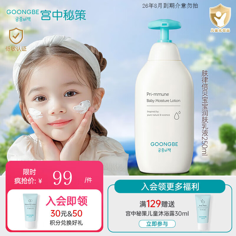 宫中秘策(GOONGBE)婴幼儿润肤乳液保湿补水滋润保湿新生儿乳液0岁+可用儿童专用乳液