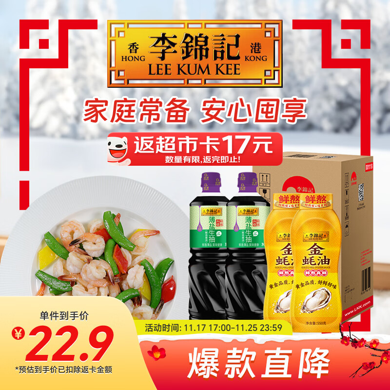 李锦记薄盐生抽 1.19kg*2+金蚝油 550g*2 组合装 家用常备调味品
