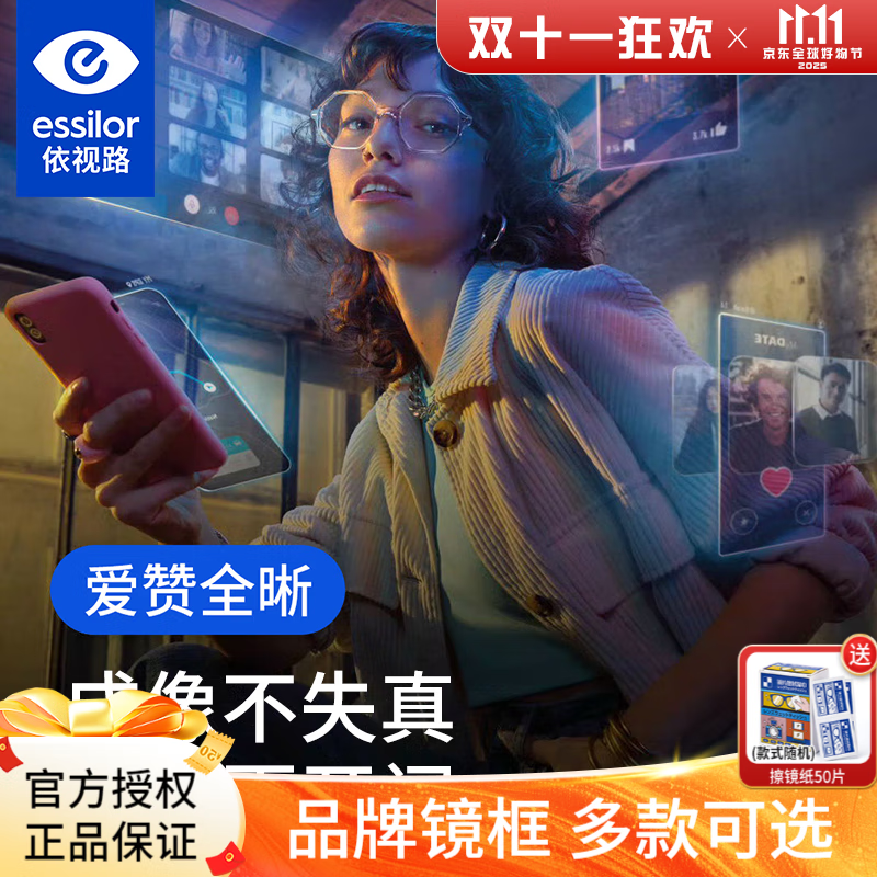 依视路爱赞全晰抗疲劳镜片 钻晶膜致 膜御防蓝光护眼 可配近视散光眼镜 爱赞全晰1.60钻晶膜致现片 (不含框) 1.60