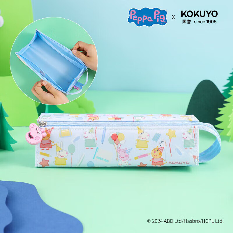 国誉(KOKUYO)小猪佩奇联名系列大容量可平摊式笔袋 蓝色 1个 WSG-PC7M22-1