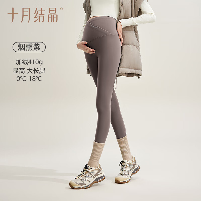 十月结晶孕妇打底裤鲨鱼裤薄款外穿 410g灵动新液态-V腰薄绒鲨鱼裤-烟熏紫 XL