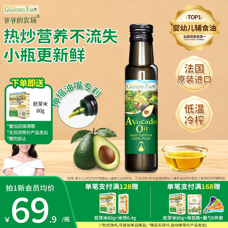 爷爷的农场宝宝辅食油 冷榨热炒食用油营养核桃油 宝宝孕妇可用 牛油果油100ml