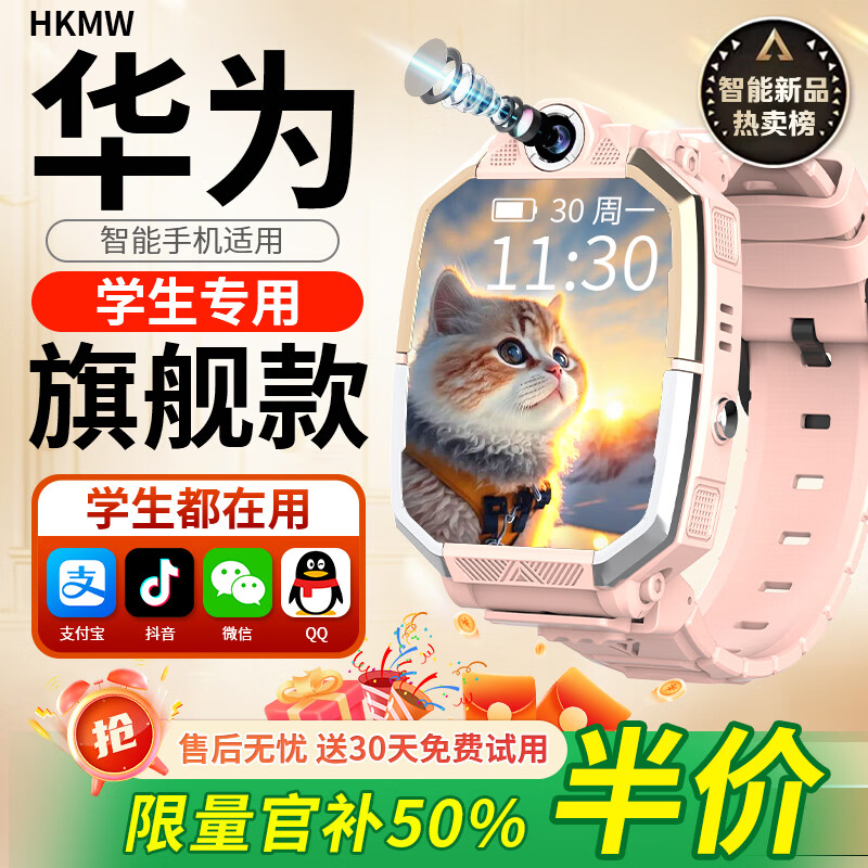HKMW天才华为机适用5G儿童电话手表高清卡全网通防水可插卡定位小学初高中生青少年男女孩智能手表 粉-旗舰机12核128G双摄+微信+支付
