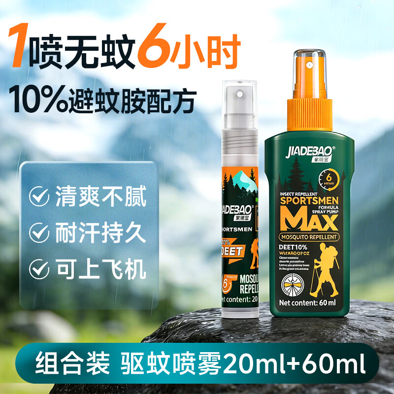 家德宝驱蚊喷雾驱蚊液10%驱蚊酯户外便携式得防蚊液蚊不叮花露水 [10%避蚊胺-驱蚊6h]20ml