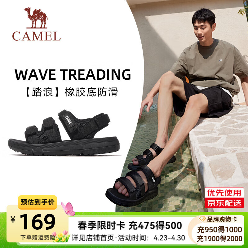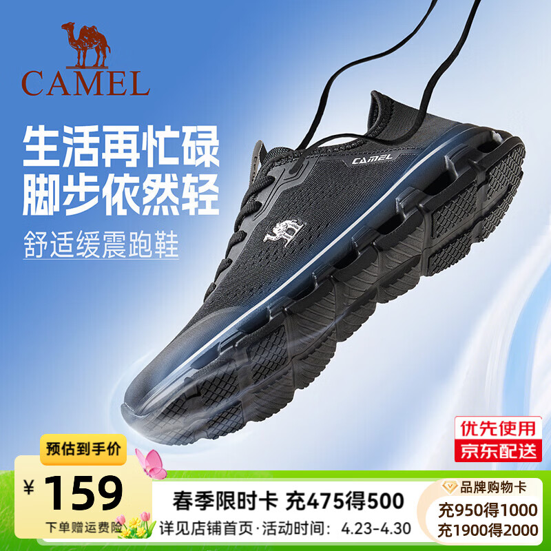 骆驼(CAMEL)跑步鞋男女2026运动鞋逐浪2.0缓震舒适防滑抓地百搭 K16B304043,黑/城堡灰,男 42