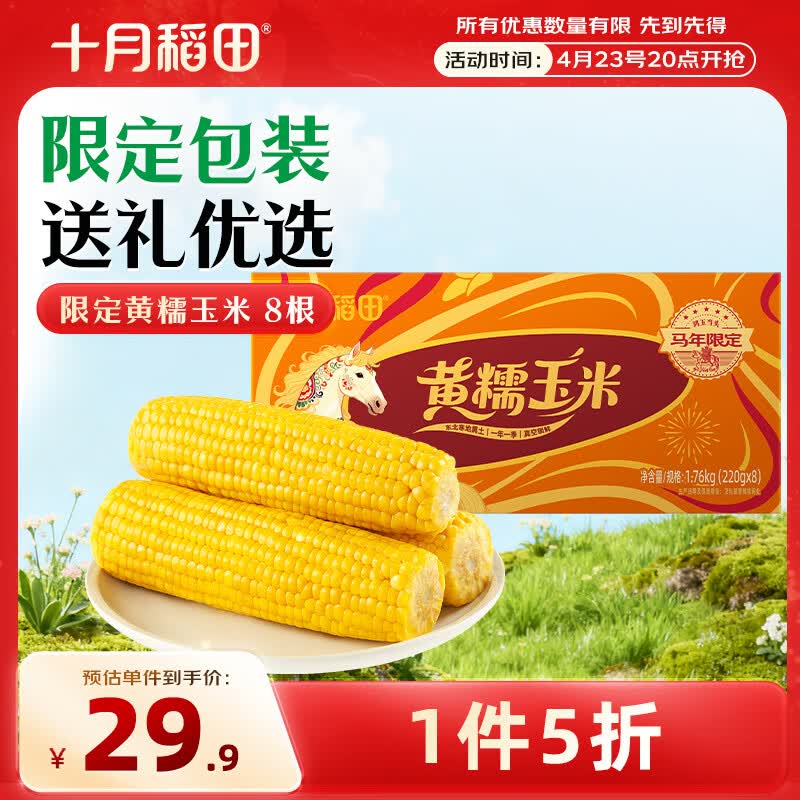 十月稻田 黄糯玉米 3.52斤(220g*8根) 东北粘苞米 早餐杂粮 马年限定