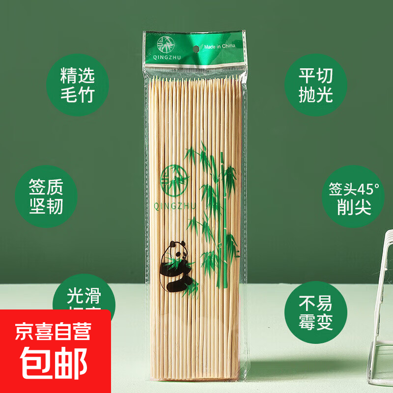 烧烤竹签一次性串串小吃野餐户外火锅家用木签天然 烧烤竹签1包(90支) 2.5*15