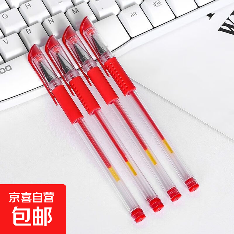 红色中性笔欧标0.5mm学生办公水性签字笔考试笔碳素中性笔 红色批改笔 5支笔