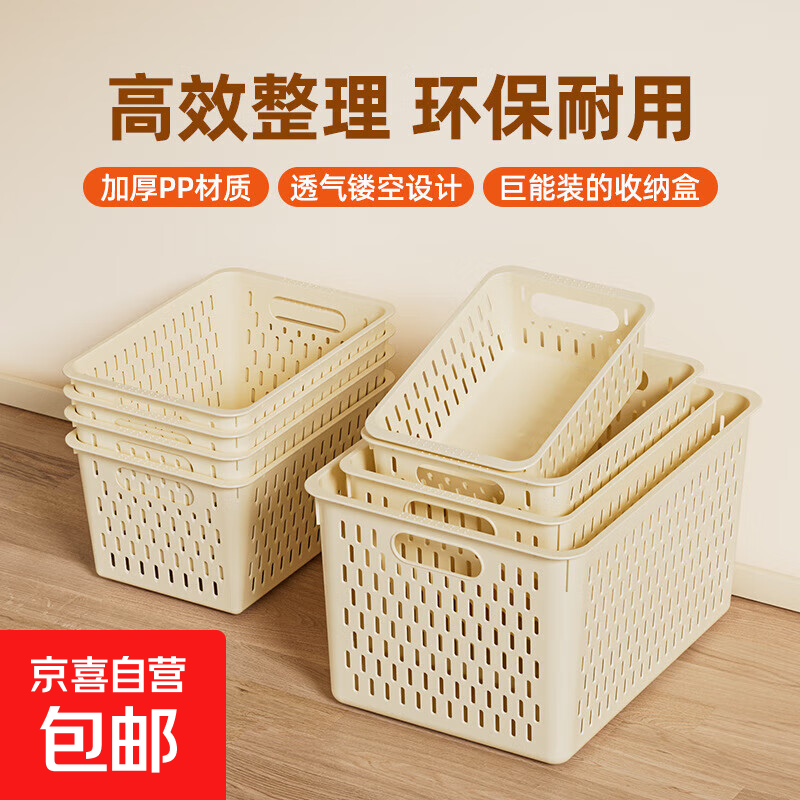 简约风桌面文件筐办公文具收纳盒办公室教室寝室文件筐高颜值大容量储物筐 【活动款】奶油风收纳筐 中号 1个装 活动款