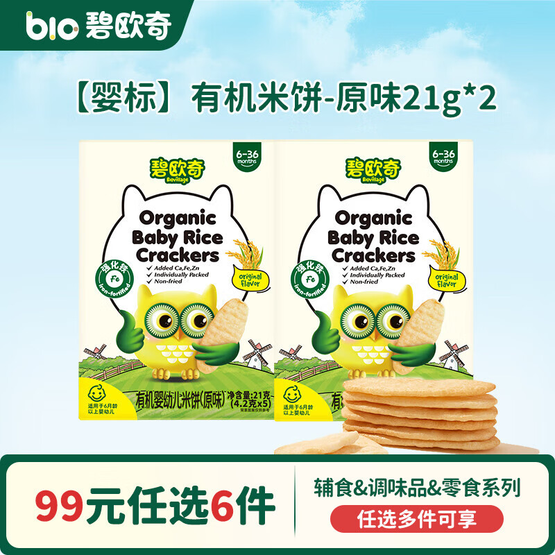 碧欧奇【99元任选6件】婴幼儿宝宝儿童零食米饼溶豆小馒头山楂棒鳕鱼肠 【婴标】有机米饼-原味21g*2