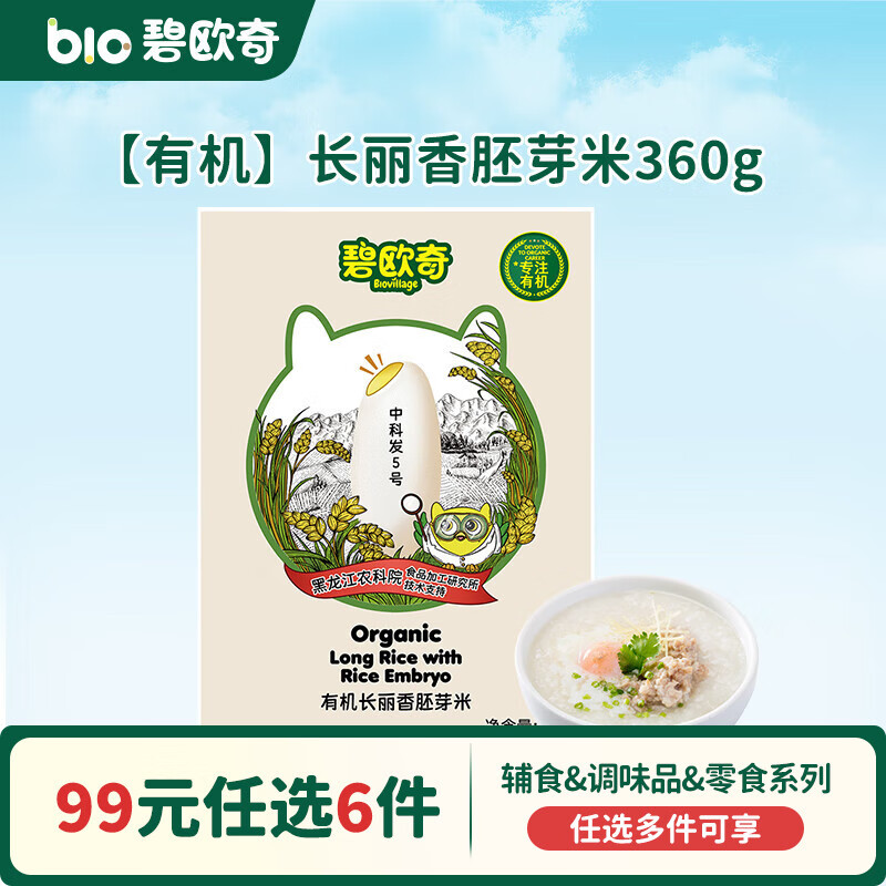 碧欧奇【99元任选6件】有机婴幼儿蔬菜辅食油米面粉面条酱油调味品 【有机】长丽香胚芽米360g