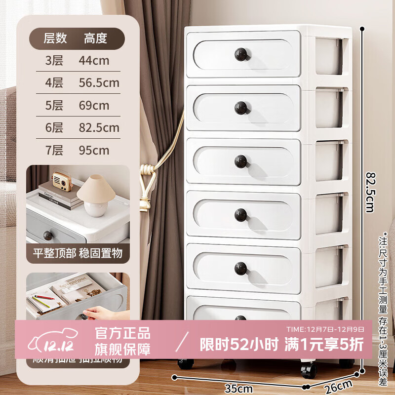 纳份爱抽屉式收纳柜家用卧室置物柜客厅墙边加厚五斗柜床头可移动储物柜 35cm简约白【赠万向滑轮】 5层