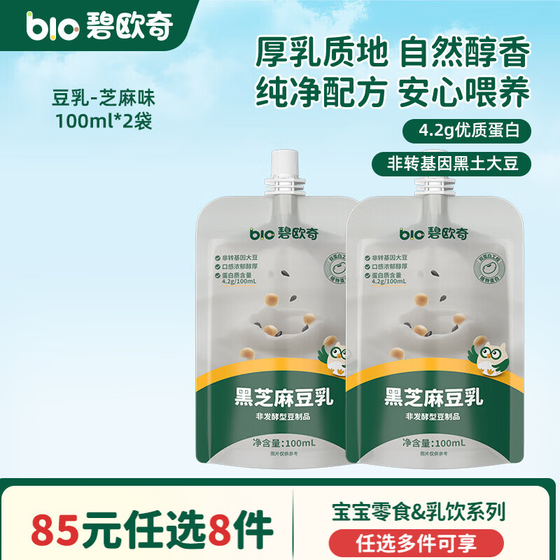 碧欧奇婴幼儿宝宝儿童零食乳饮集合 豆乳-芝麻味100ml*2