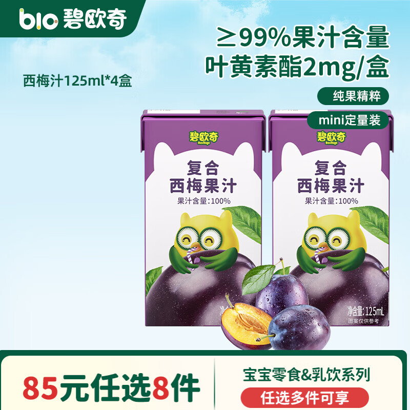 碧欧奇婴幼儿宝宝儿童零食乳饮集合 西梅汁125ml*4