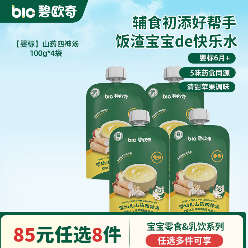 碧欧奇婴幼儿宝宝儿童零食乳饮集合 【婴标】山药四神汤100g*4