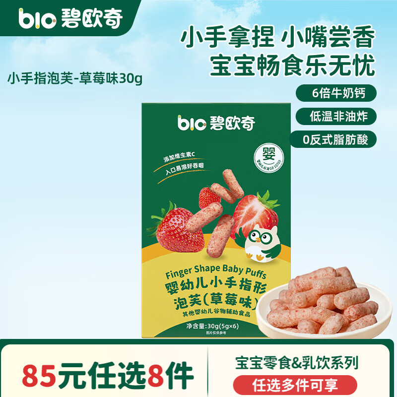 碧欧奇婴幼儿宝宝儿童零食乳饮集合 【婴标】泡芙-草莓味30g