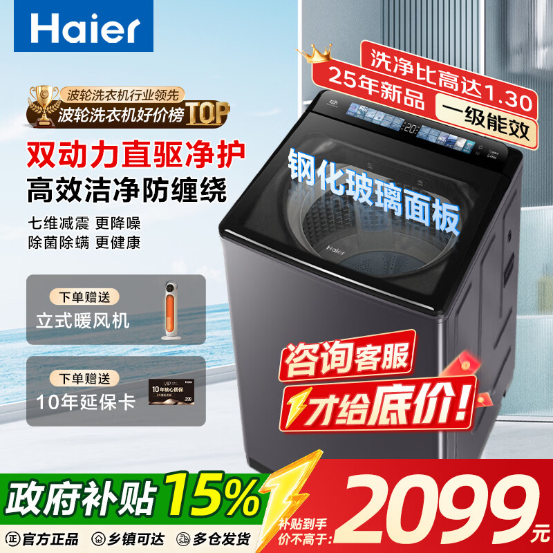 海尔(Haier)全自动波轮洗衣机家用10/12/13公斤大容量手搓洗防缠绕直驱变频桶自洁除菌螨语音一级能效以旧换新 10公斤高端款+AI智慧洗+直驱电机+语音播报 波轮