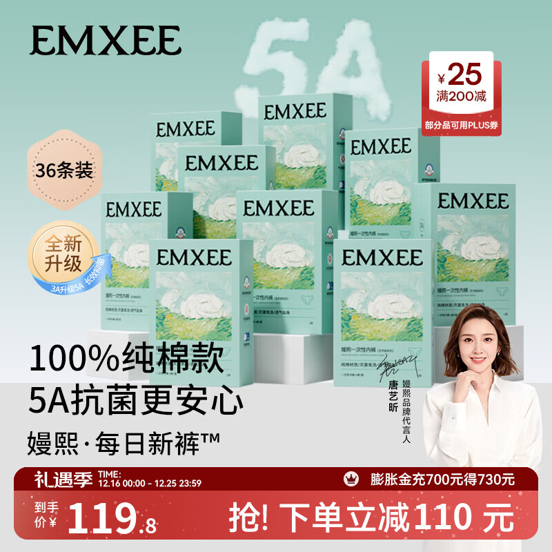 嫚熙(EMXEE)孕妇内裤产妇一次性内裤旅游出差月子便携装免洗纯棉内裤 【5A抗菌纯棉】9盒36条 XXL 女(120-150斤)男(150-170斤)
