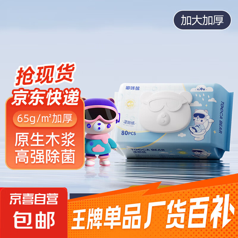 私处湿巾80抽加厚清洁湿纸巾擦屁股如厕原生木浆湿厕纸 80抽 1包【嘟咔熊】