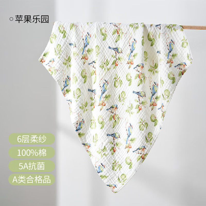 欧孕(OUYUN)婴儿纱布浴巾纯棉宝宝儿童专用软吸水速干婴幼儿洗澡毛巾被 苹果乐园【精梳棉 5A抗菌】6层 90x90cm