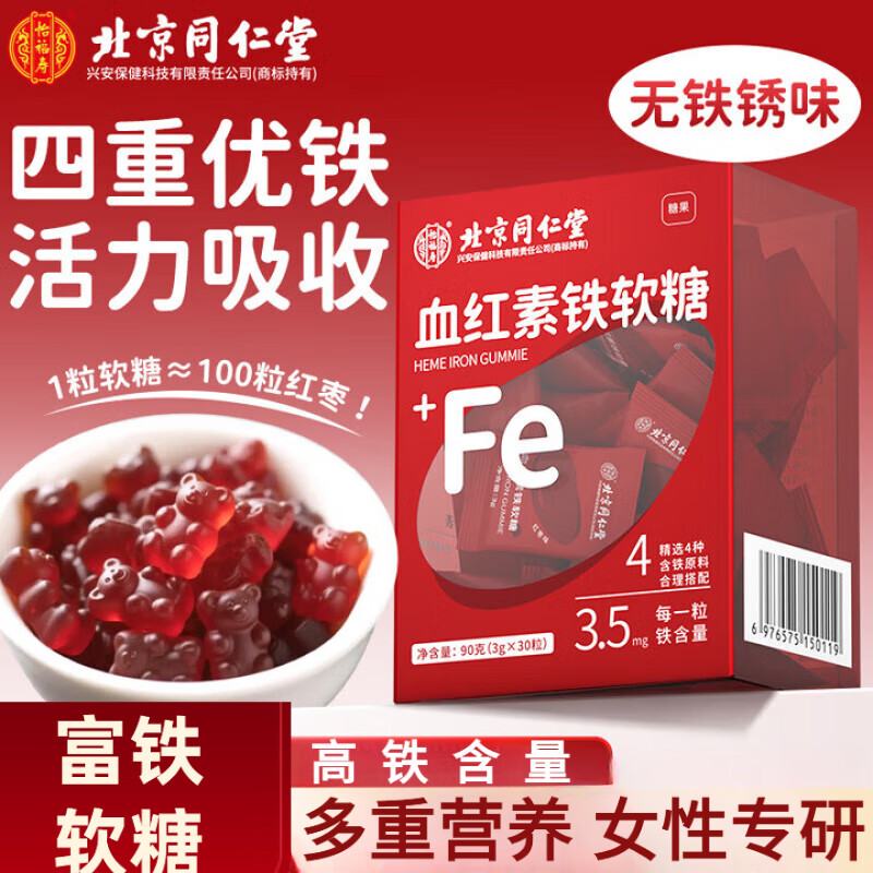 同仁堂血红素富铁软糖 铁剂孕妇女性搭补养贫气铁元素血免疫力睡眠 【一盒体验装】