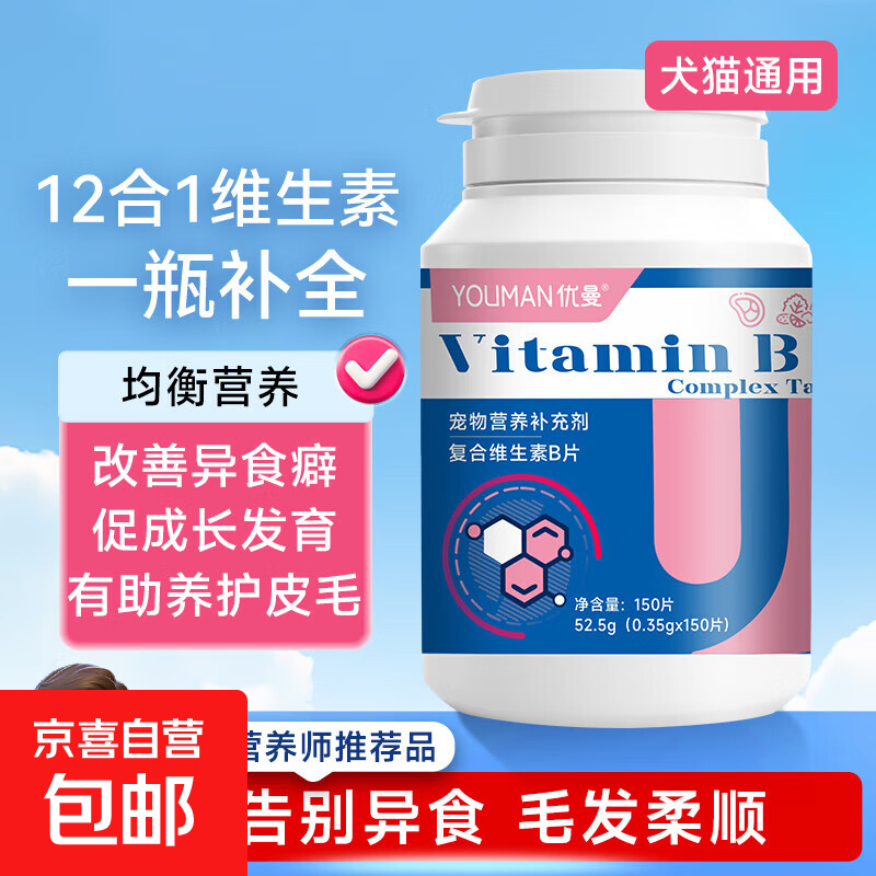 宠物维生素B片狗狗猫咪提升免疫力强健体质告别异食改善掉毛宠物营养补充剂 【增强免疫】复合维生素B 150片/瓶