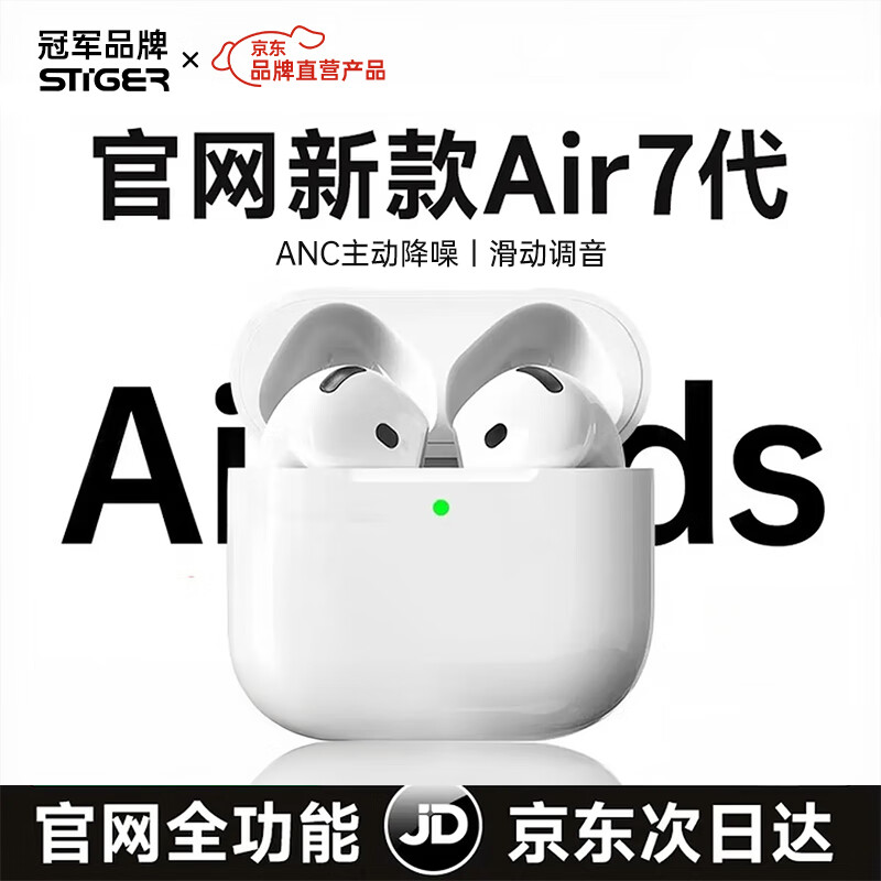 stiger【直营正品丨降噪Air7代】 蓝牙耳机真无线适配苹果主动降噪半入耳式iPhone17/16/15Pods 【降噪全功能pods顶配版】 【主动降噪+空间音頻+三真电量】