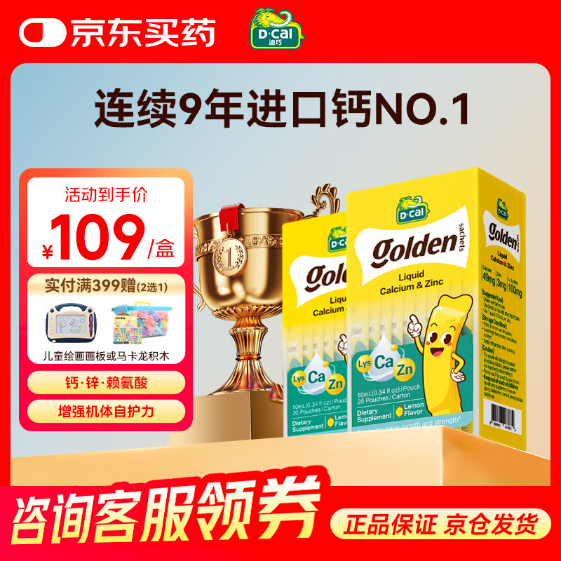迪巧小黄条赖氨酸锌液体钙 儿童青少年助长高补钙增强免疫力 两盒装