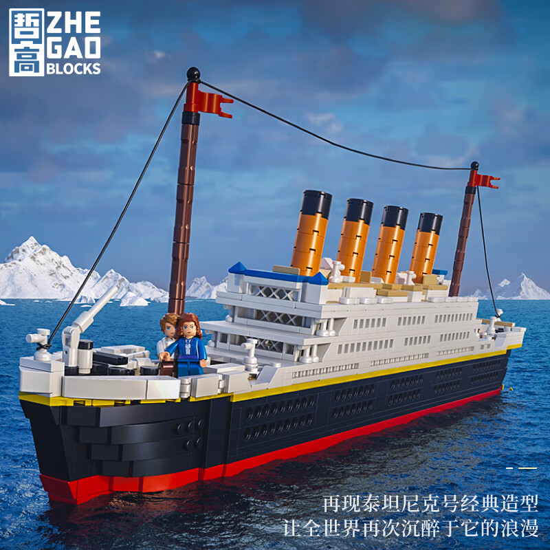 哲高 积木拼装泰坦尼克号轮船玩具模型高难度大型仿真航母男孩礼物 泰坦尼克号01010-1288颗粒