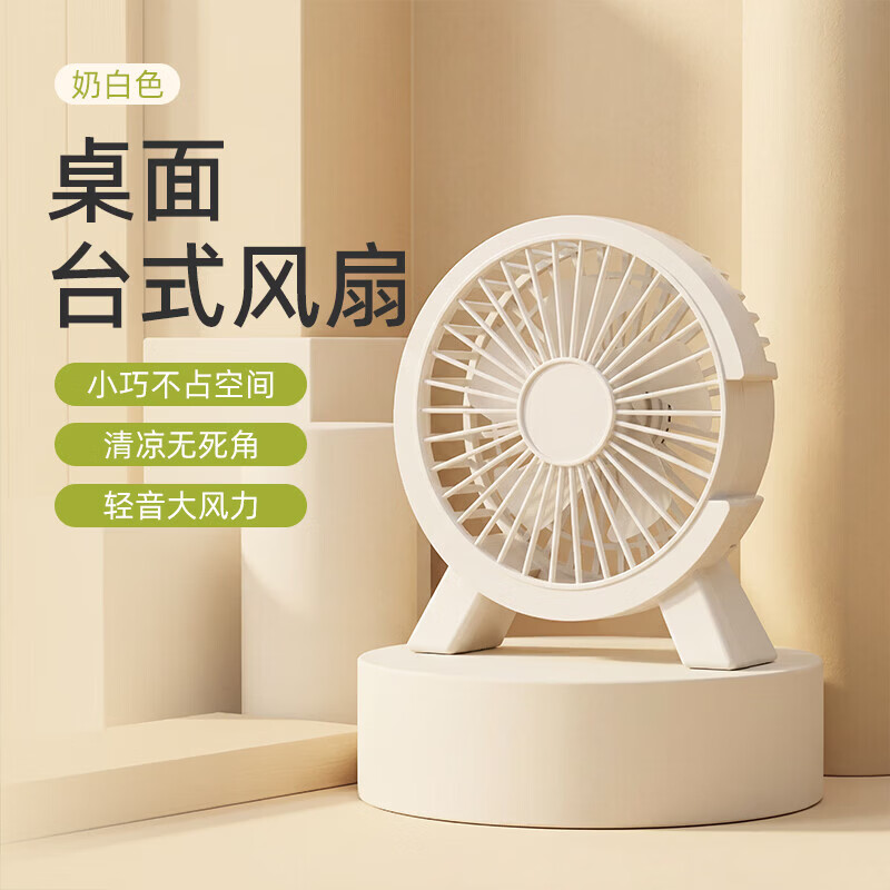 桌面小风扇静音办公室充电风扇小型家用大风力迷你台扇吹便携台式 小C桌面风扇-白色