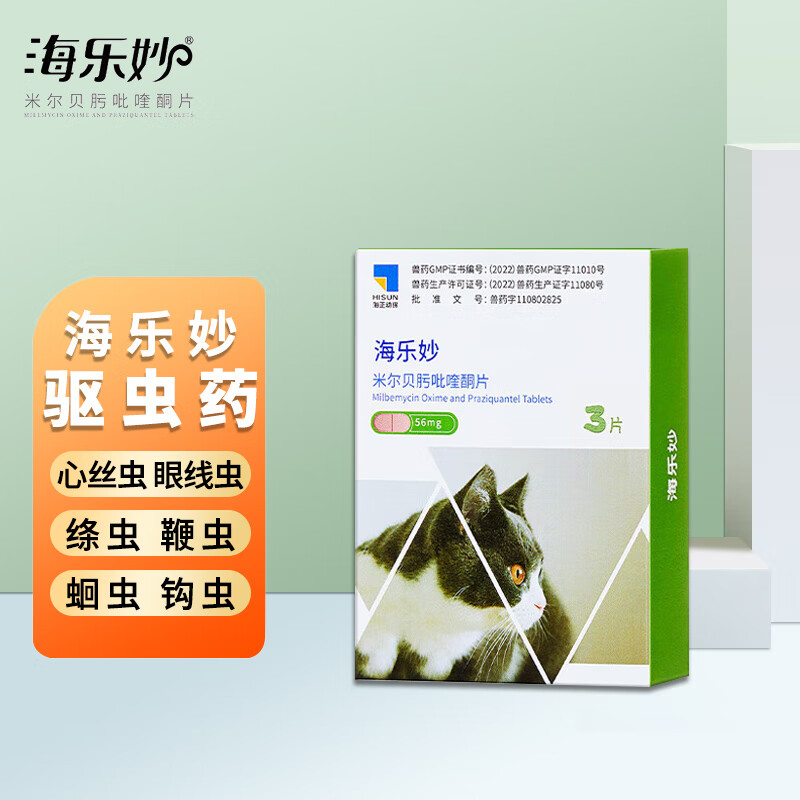 海乐妙猫咪体内外驱虫药猫用 米尔贝肟吡喹酮片宠物内外同驱 海乐妙成猫 3粒*2盒