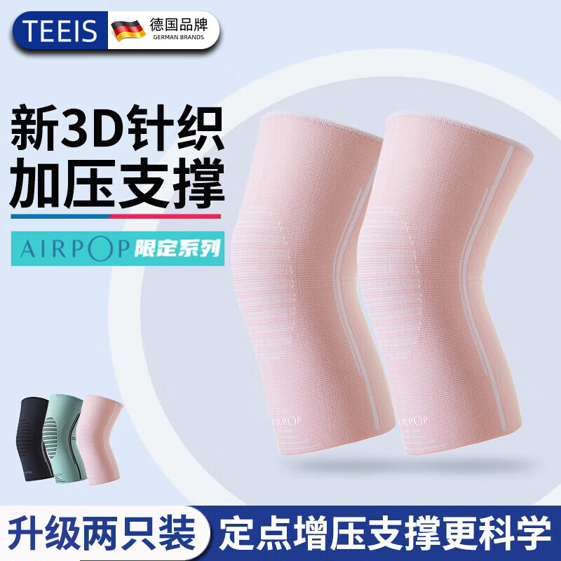 TEEIS德国护膝保暖老寒腿男女士专用膝盖运动半月板韧带髌骨登山羽毛球 樱花粉 M码丨 适合120斤-150斤 丨两只装