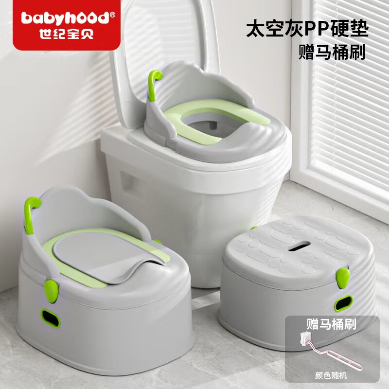 世纪宝贝(babyhood)儿童马桶坐便器 宝宝马桶辅助器多功能马桶圈 3合1分体式座便器 太空灰PP硬垫(赠刷子)