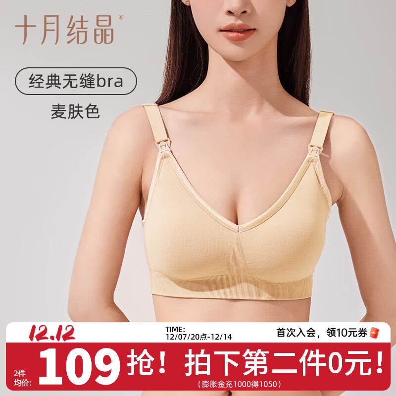 十月结晶哺乳文胸孕妇内衣产前产后喂奶胸罩聚拢 麦肤色【经典无缝】 M