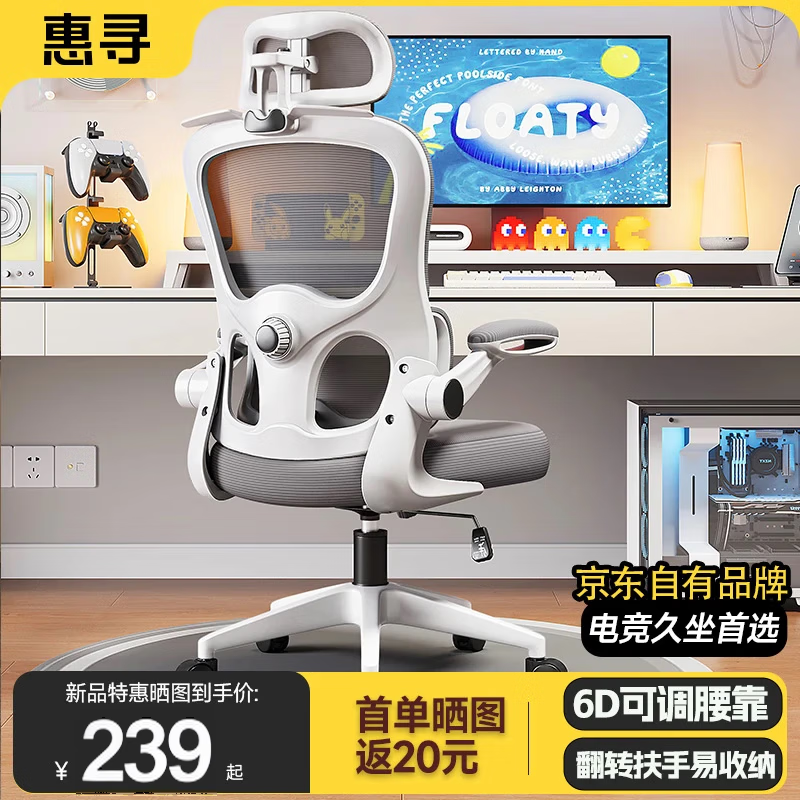 惠寻电竞椅人体工学椅子可躺午休电脑椅久坐打游戏舒服力学椅办公椅子 【升级逍遥躺】科技灰-三级杆-头枕 可旋转可升降扶手 120-155度(含)