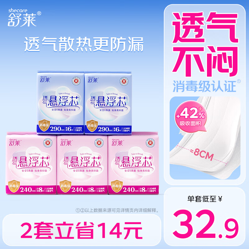 舒莱医护消毒级卫生巾日夜套组36片透气防漏姨妈巾京东自营官方旗舰