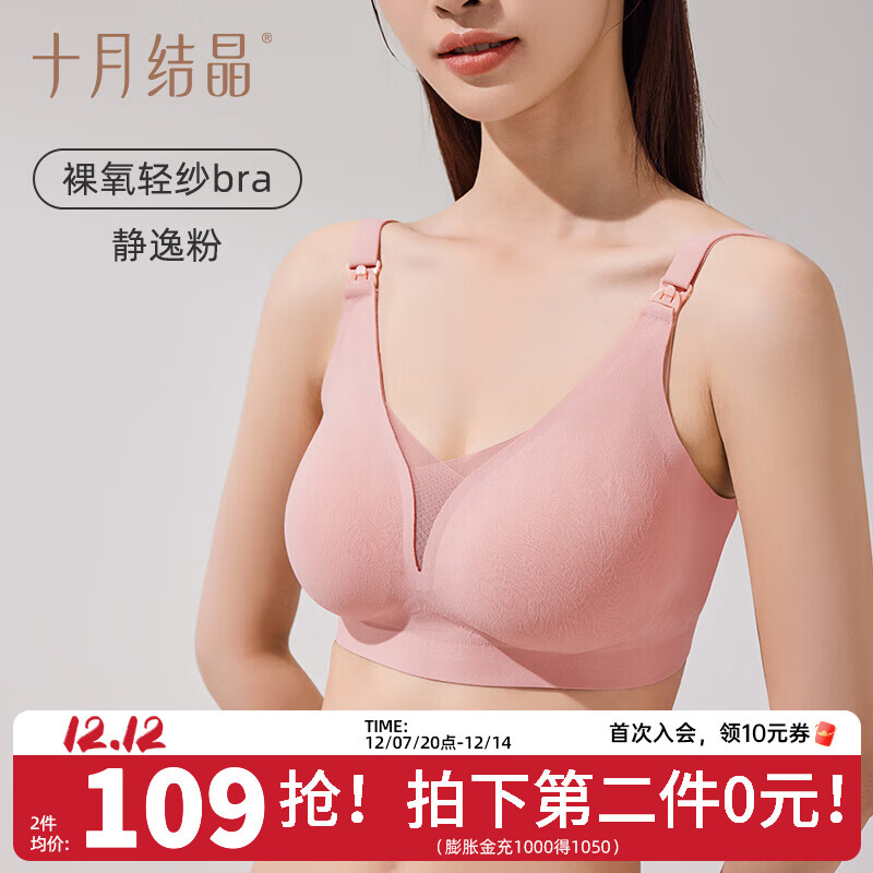 十月结晶哺乳文胸孕妇内衣产前产后喂奶胸罩聚拢 静逸粉【裸氧轻纱】 XL