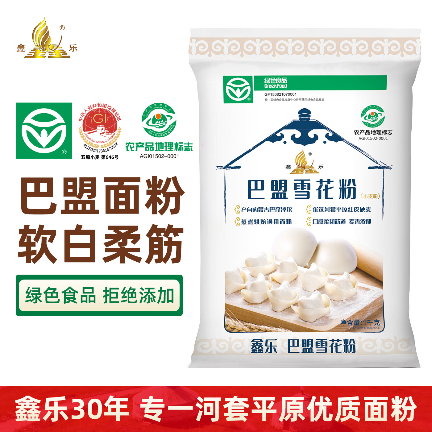 鑫乐雪花粉麦芯精华【河套平原雪花粉】国家地标A级绿色食品中筋面粉 巴盟雪花粉2斤