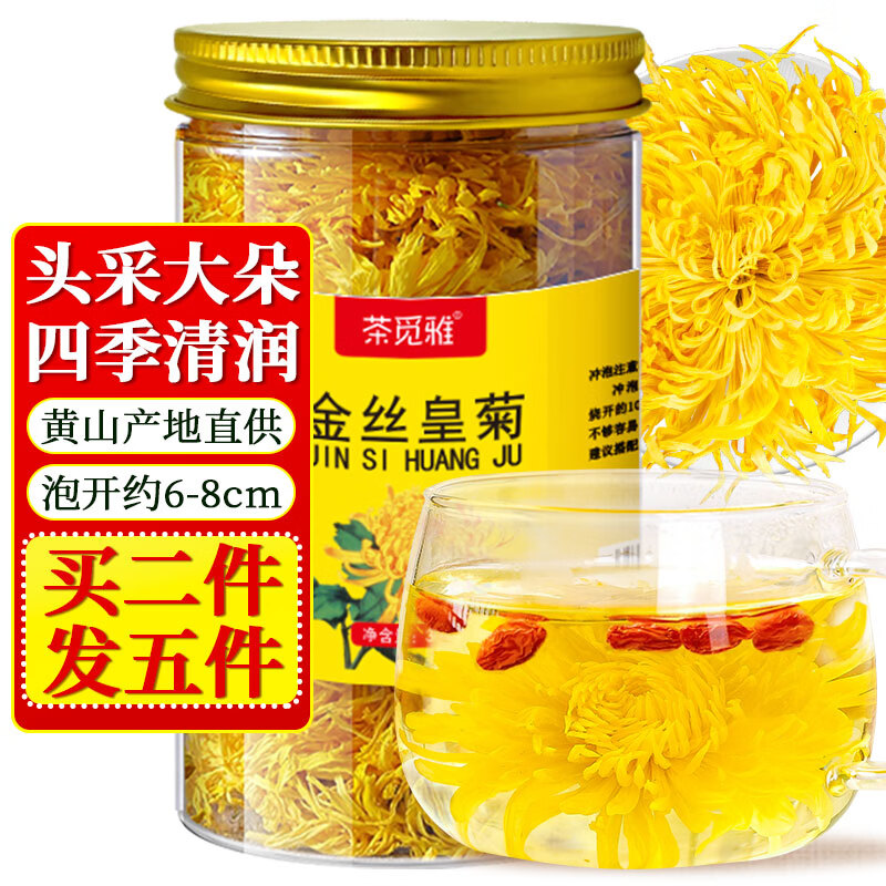 茶觅雅 菊花茶金丝皇菊大朵黄山胎贡菊降去泡水喝的养生花草茶火特茶级 【大花90朵】泡开6-8cm丨30g