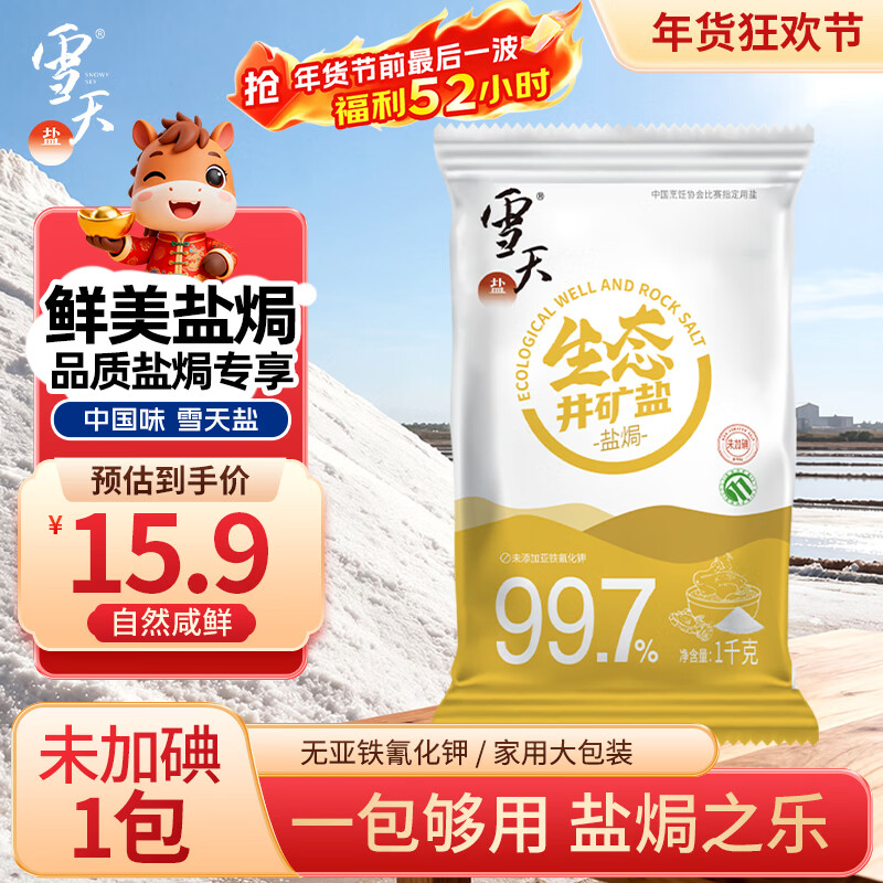雪天焗盐1KG【未加碘】食用盐纯净盐源家用烹饪调味品调料 生态井矿盐