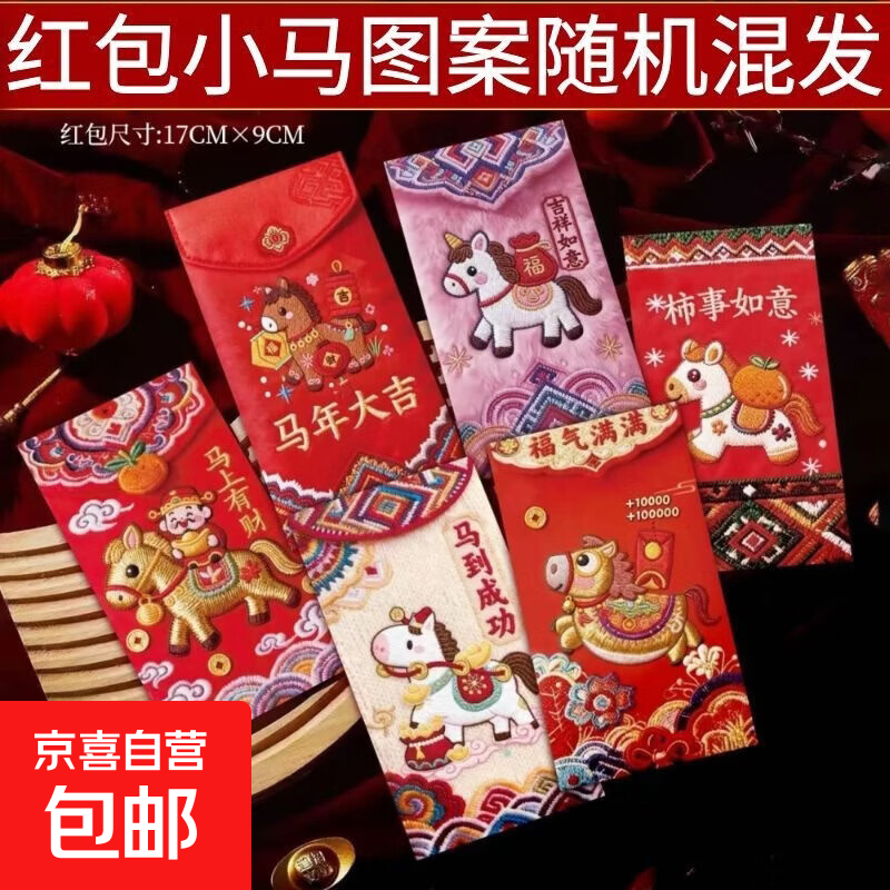 马年红包2026卡通手绘福马刺绣压岁包创意结婚新年过年专用利是封 【12个装-2包】马年红包