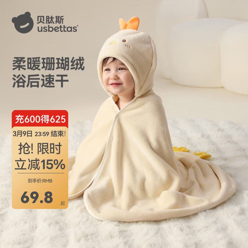 贝肽斯婴儿浴巾纱布新生儿宝宝冬季速干浴袍a类儿童洗澡巾带帽斗篷可穿 威尔士恐龙【7A抗菌 不易掉毛起球】双面珊瑚绒 125x70