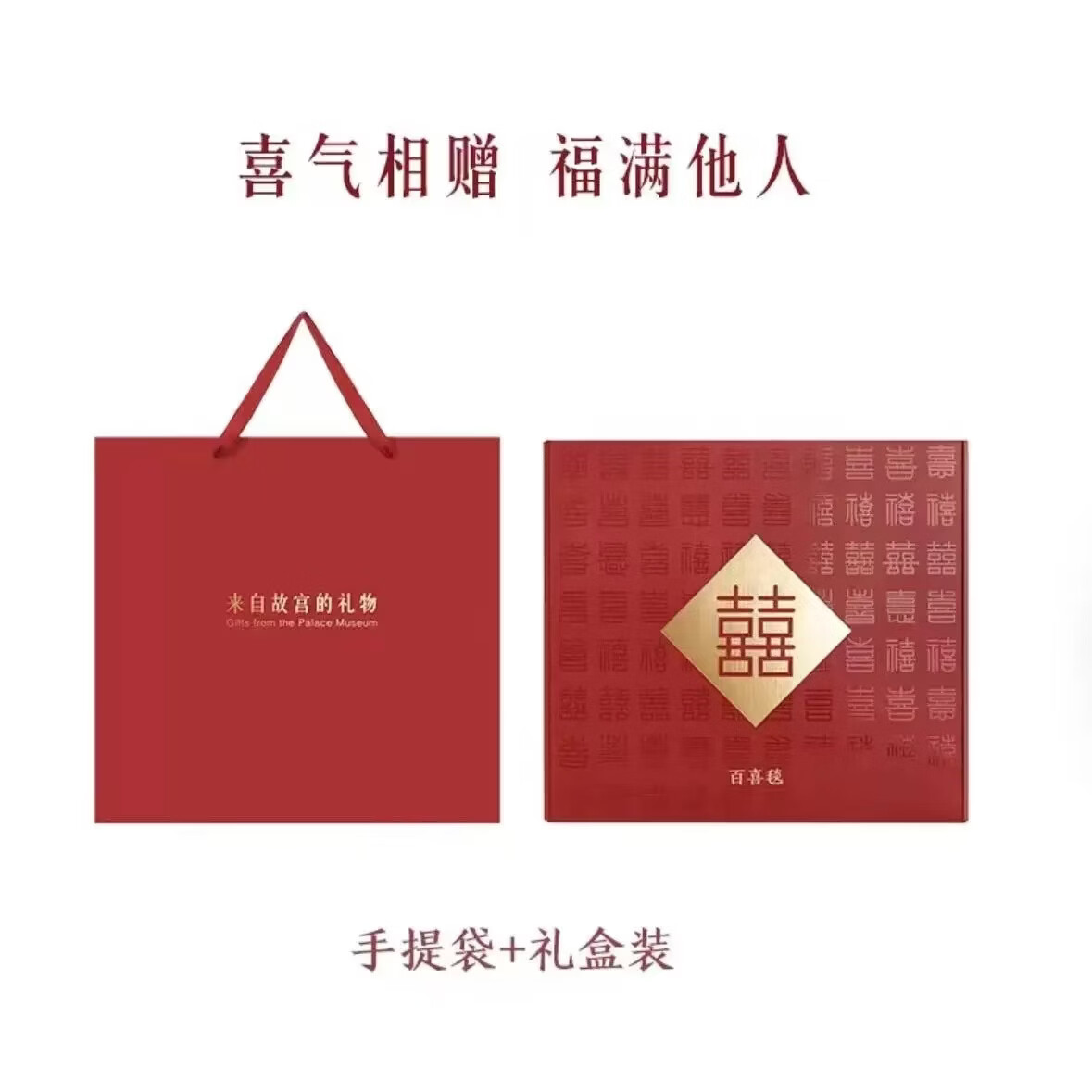 故宫百喜毯文创生日新年礼物结婚订婚送新娘新人实用喜庆祝福礼盒 百喜毯【礼袋礼盒套餐】 127cm*152cm