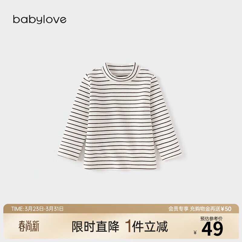 babylove【清仓】婴幼儿保暖t恤春秋季长袖条纹打底衫男女宝宝外出百搭 奶白 110